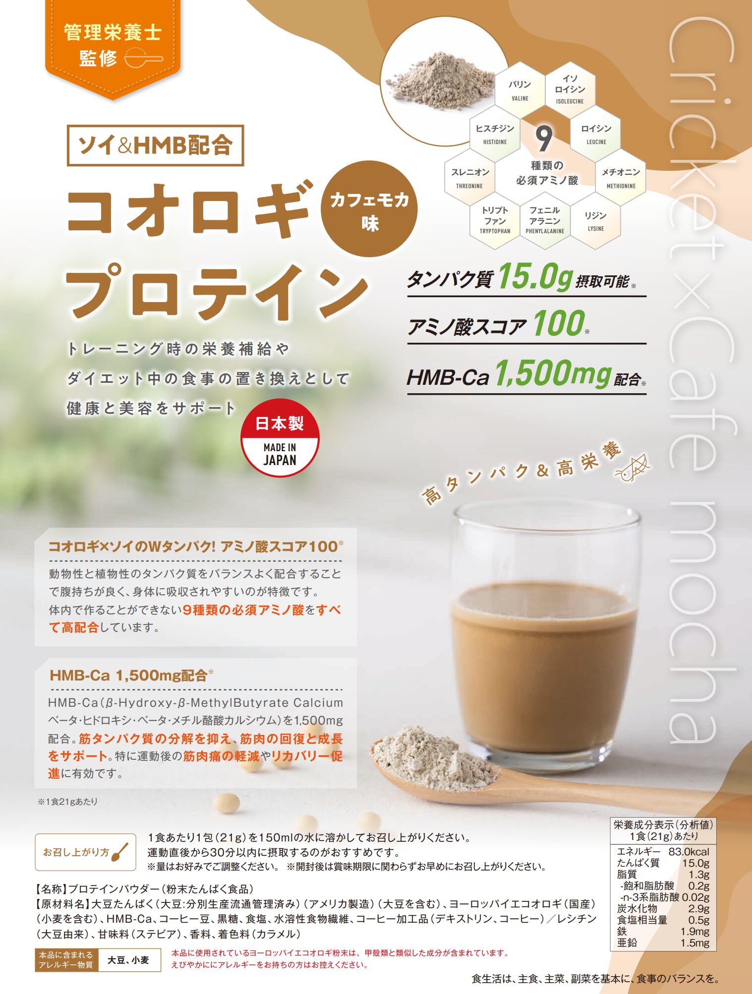 ソイ&HMBコオロギプロテイン カフェモカ味